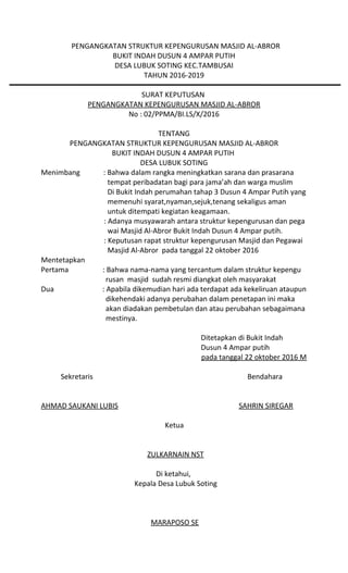 Download Contoh Sk Pengurus Masjid Dari Kepala Desa Doc Word