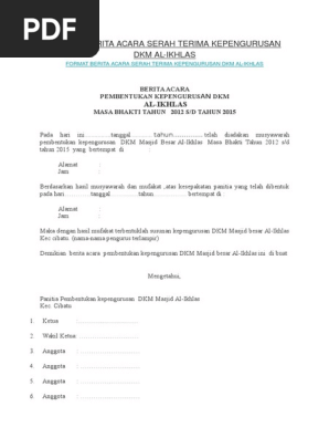 Format Berita Acara Serah Terima Kepengurusan Dkm Al Pdf