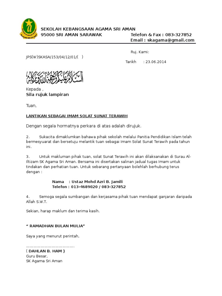 contoh surat pelantikan imam masjiddoc